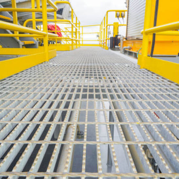 Platform grating, composed of several pieces of welded steel grating or press locked gratings are commonly installed in ships and industrial applications, such as refineries, power plants and offshore platforms.